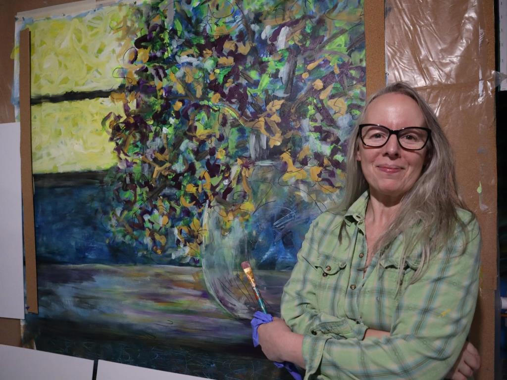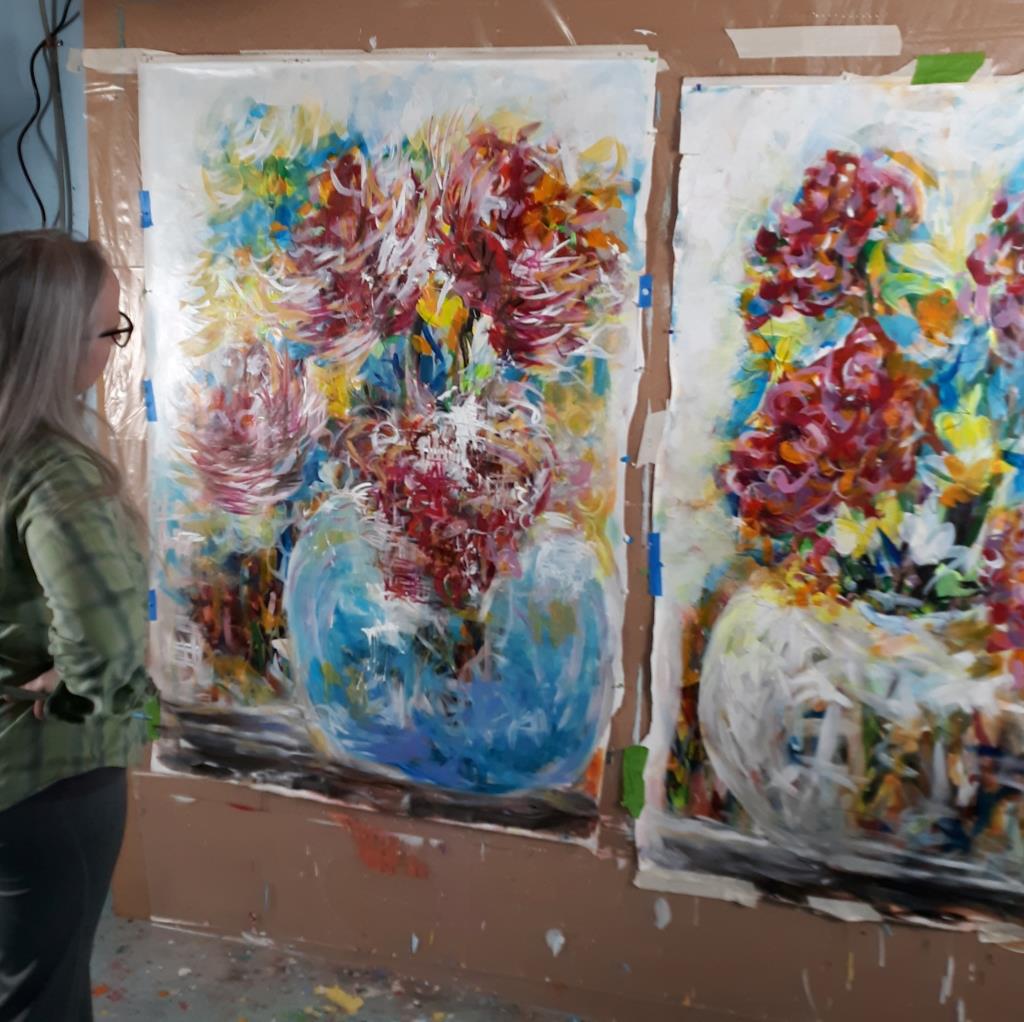 Although she paints from imagination without reference, her paintings often have identifiable objects, such as floral bouquets, figures, or landscapes; and relatable subjects such as joy, love, life, family, whimsy and the pleasure of creation.